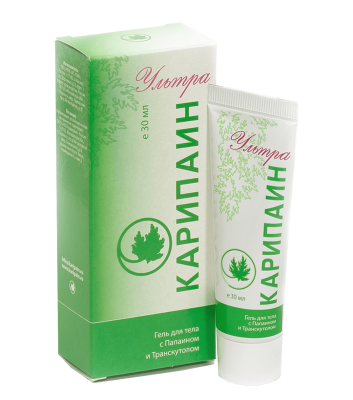 «Karipain plus balsam uscat» este un preparat modern şi inovaţional care s-a dovedit a fi un remediu excelent în tratamentul afecţiunilor coloanei vertebrale şi articulaţiilor. «Karipain plus balsam uscat» este un analog îmbunătăţit al preparatului «Karipain balsam uscat №10» datorită creşterii concentraţiei de papaină de la 350 Fip-ПЕ până la 600 Fip-ПЕ şi adăugării a două ingrediente noi: Bromelaina şi Colagenaza. Majorarea concentraţiei de substanţe active a permis de a reduce numărul de proceduri de electroforeză şi de a majora eficienţa tratamentului conservativ, acest fapt fiind dovedit prin studii clinice de anvergură şi experienţa medicilor practici.