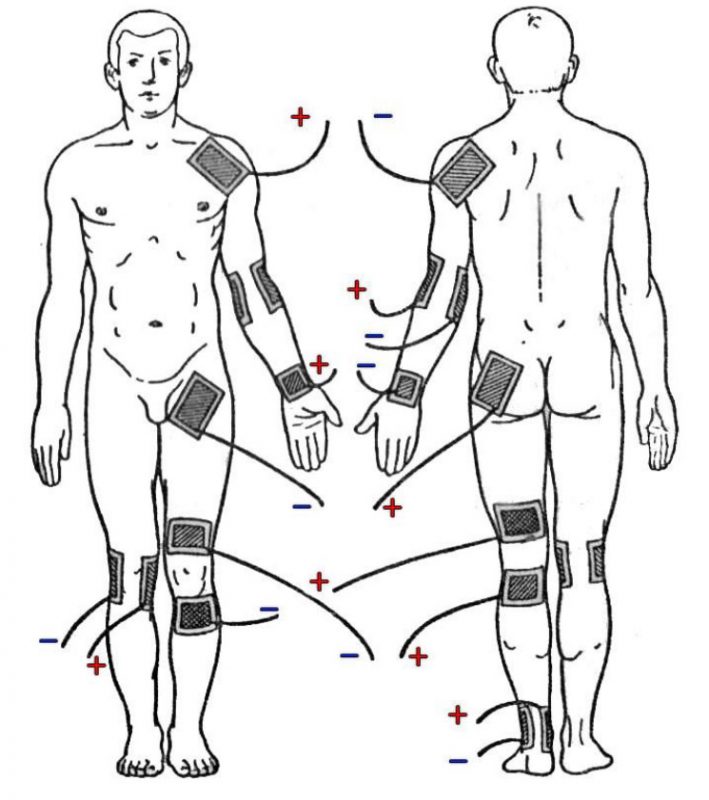 Установить таймер процедуры на 15-20 минут и регулятором тока выставить значение в диапазоне от 0,5 мА до 15 мА. в зависимости от ощущений пациента. Повышать ток необходимо плавно, опираясь исключительно на ощущения пациента (повышать ток до легкого покалывания). Прокладки должны плотно прилегать к телу пациента, это поможет исключить точечный контакт, в области которого могут появиться микроожоги.